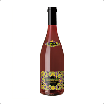 美しく明るい赤色に紫色の明るさが反射するように輝きます。さくらんぼやブラックベリー、ブラックカラントといった赤や黒の果実の表現豊かなアロマが感じられます。口に入れるとフレッシュで豊かなアタックを感じ、ライムや花のほのかなニュアンスが印象的です。
