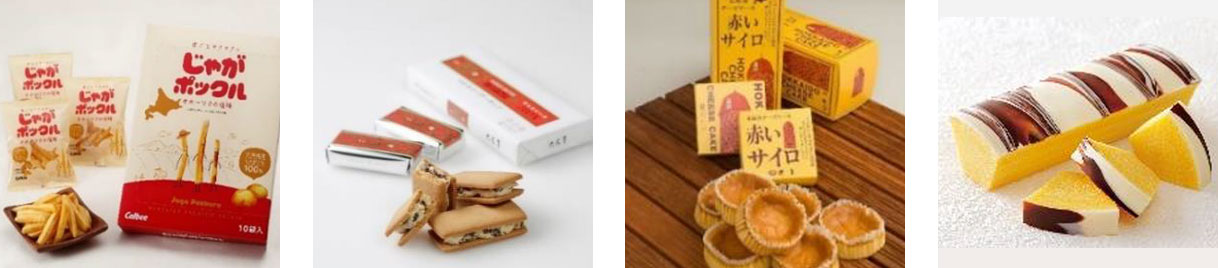 カルビー「じゃがポックル」や六花亭「マルセイバターサンド」などの人気菓子を、期間・数量限定でご用意いたします。