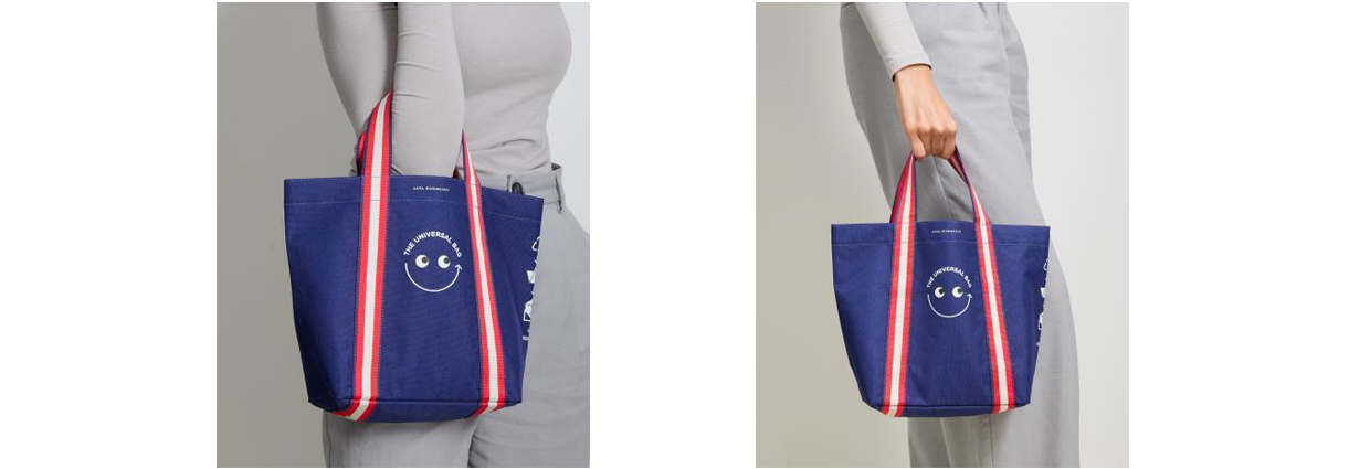 明治屋はアニヤ・ハインドマーチのこの取り組みに共感し、2024年2月に同社とコラボレーションした「The Universal Bag」を発売しました。青・赤・白のトリコロールを基調とした明治屋ストアー限定デザインのエコバッグは即日完売し、大きな反響を呼びました。この度、従来のデザイン、機能性はそのままに、コンパクトなサイズ感が魅力の「ミニバッグ」を発売いたします。ちょっとしたお買い物や、ランチバッグとしてなど、日常のさまざまなシーンでお使いいただけるエコバッグです。