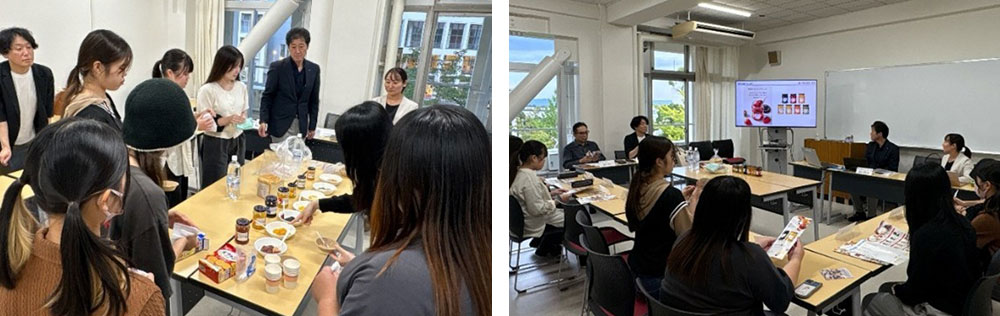 このたび初めての試みとして、梅花女子大学との産学連携プロジェクトが実現しました。梅花女子大学は当社のジャムを製造する株式会社明治屋食品工場がある大阪府茨木市に位置し、2025年9月から2026年1月までの約5か月間、「実践・産学連携演習(目久田 純一准教授・菅本 大二教授)」において、ジャムの新たな食べ方の共同開発に取り組みました。